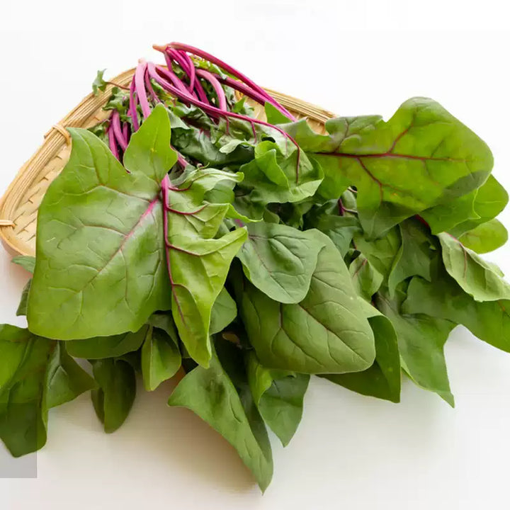 The thick, dark green leaves of this edible ornamental provide tasty greens throughout the summer, when traditional spinach will not grow. The mild flavor makes Red Stem equally good cooked or fresh, and is more palatable to children than the peppery cool-season varieties. The red stems really jazz up the plate.
